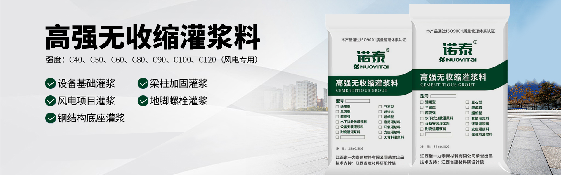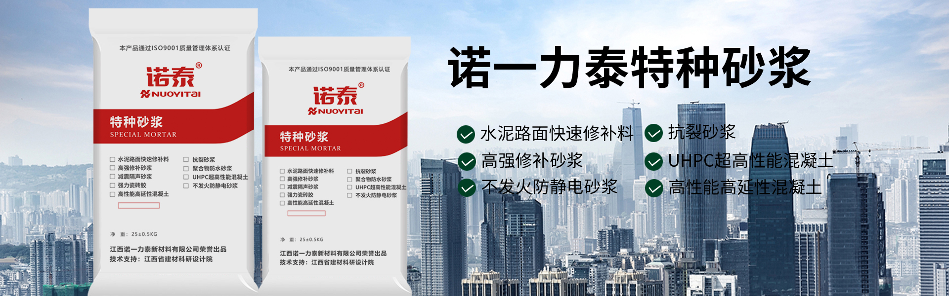 江西諾一力泰新材料有限公司位于江西宜春奉新縣,是專業從事灌漿料、水泥路面修補砂漿抗裂砂漿防水砂漿、保溫砂漿隔聲砂漿粘結砂漿等砂漿系列產品生產銷售的廠家。